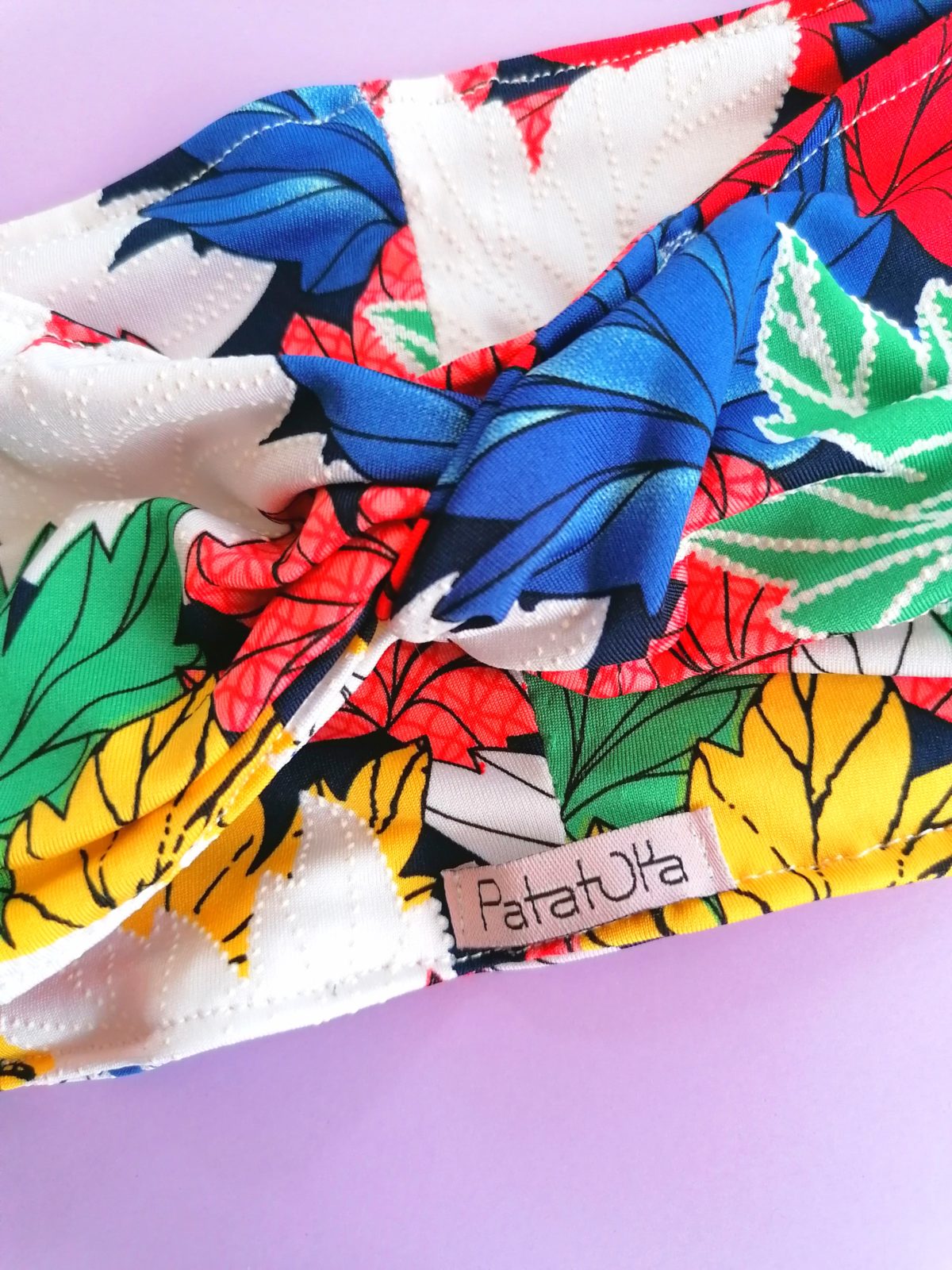 Χειροποίητη ,ελαστική ,εμπριμέ κορδέλα – τουρμπάνι , φτιαγμένη από ύφασμα μαγιό !
