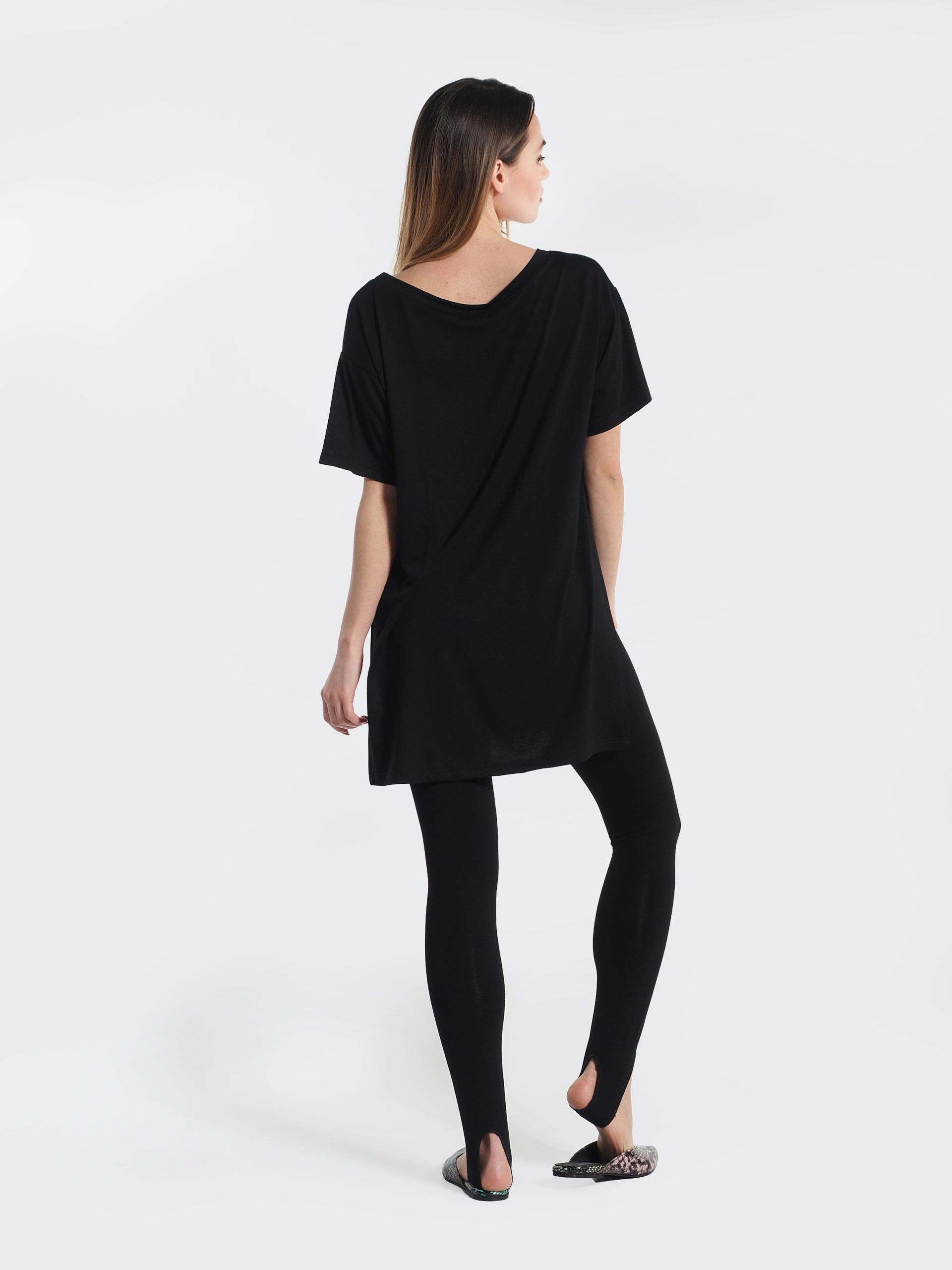 Μπλούζα μαύρη, oversized, μακρυά με πλαϊνά ανοίγματα.