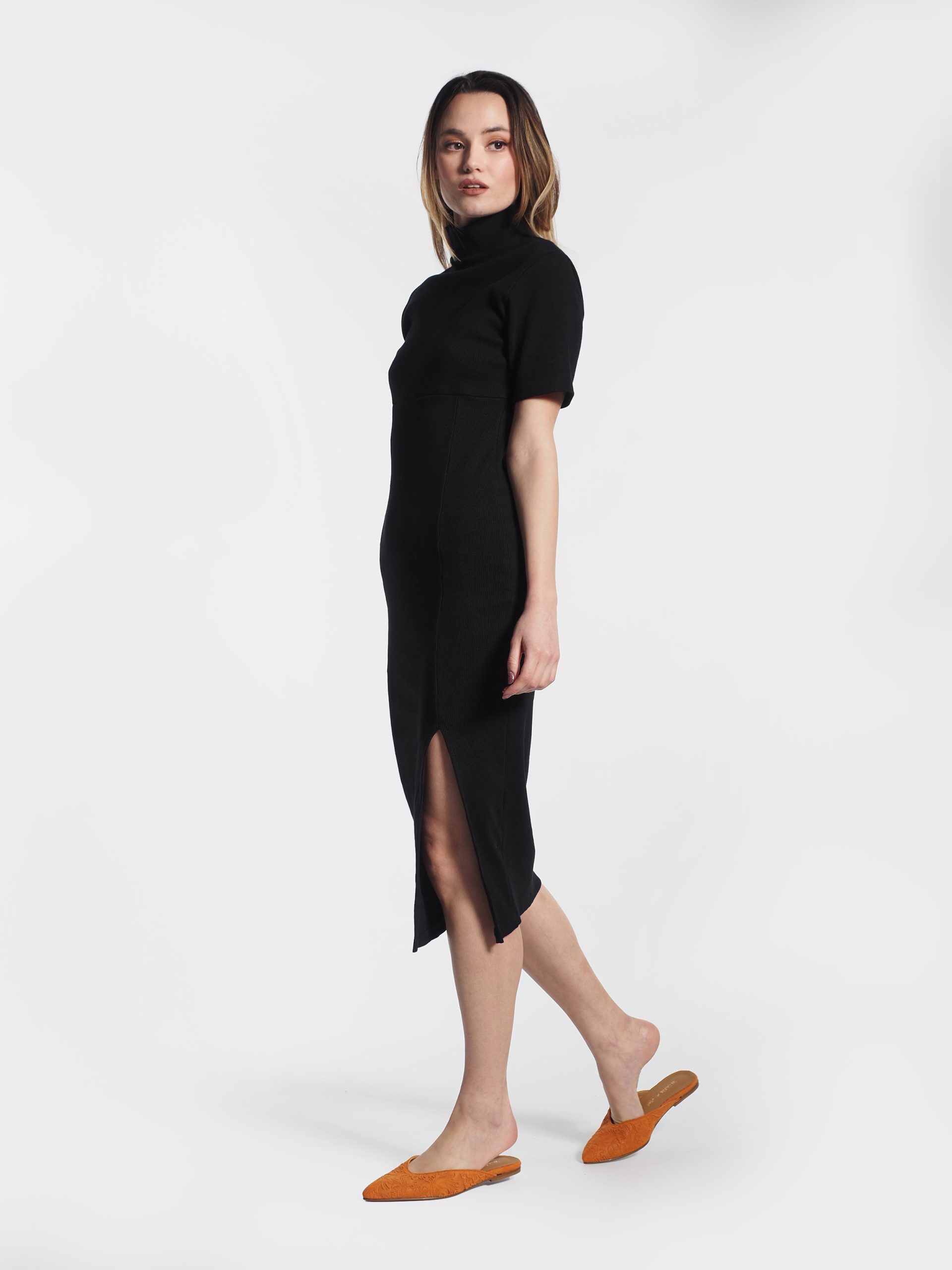 Φόρεμα μαύρο, midi. Χειροποίητο. Ζιβάγκο, ριπ, κοντομάνικο με σκίσιμο μπροστά και ραφή κάτω από το στήθος. 95% cotton και 5%lyc. One size. Χρόνος παράδοσης 3-4 εργάσιμες ημέρες. Φτιαγμένο και ραμμένο στην Ελλάδα!