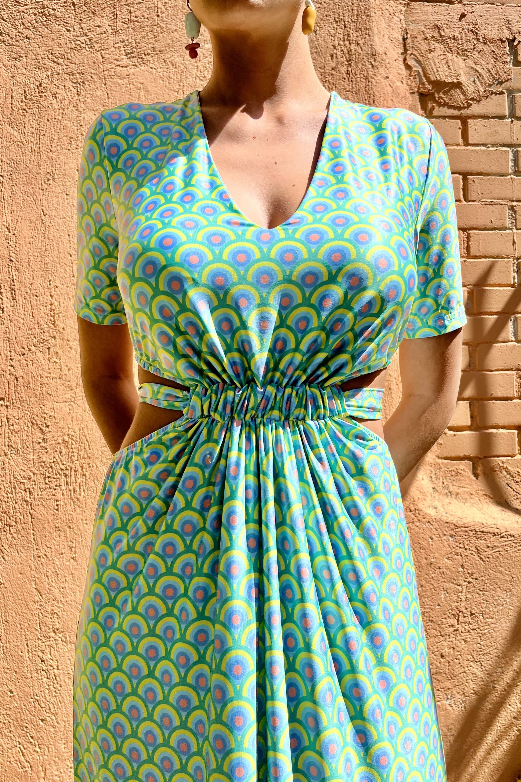 Δροσερό , αέρινο , μάξι φόρεμα με κοντό μανίκι ,ντουμπλαρισμένο μπούστο για άριστη εφαρμογή , ανοιχτή μέση και δέσιμο στην μέση πίσω .Σούρα στην μέση εμπρός και στο μπούστο ,αλλά και στη φούστα!