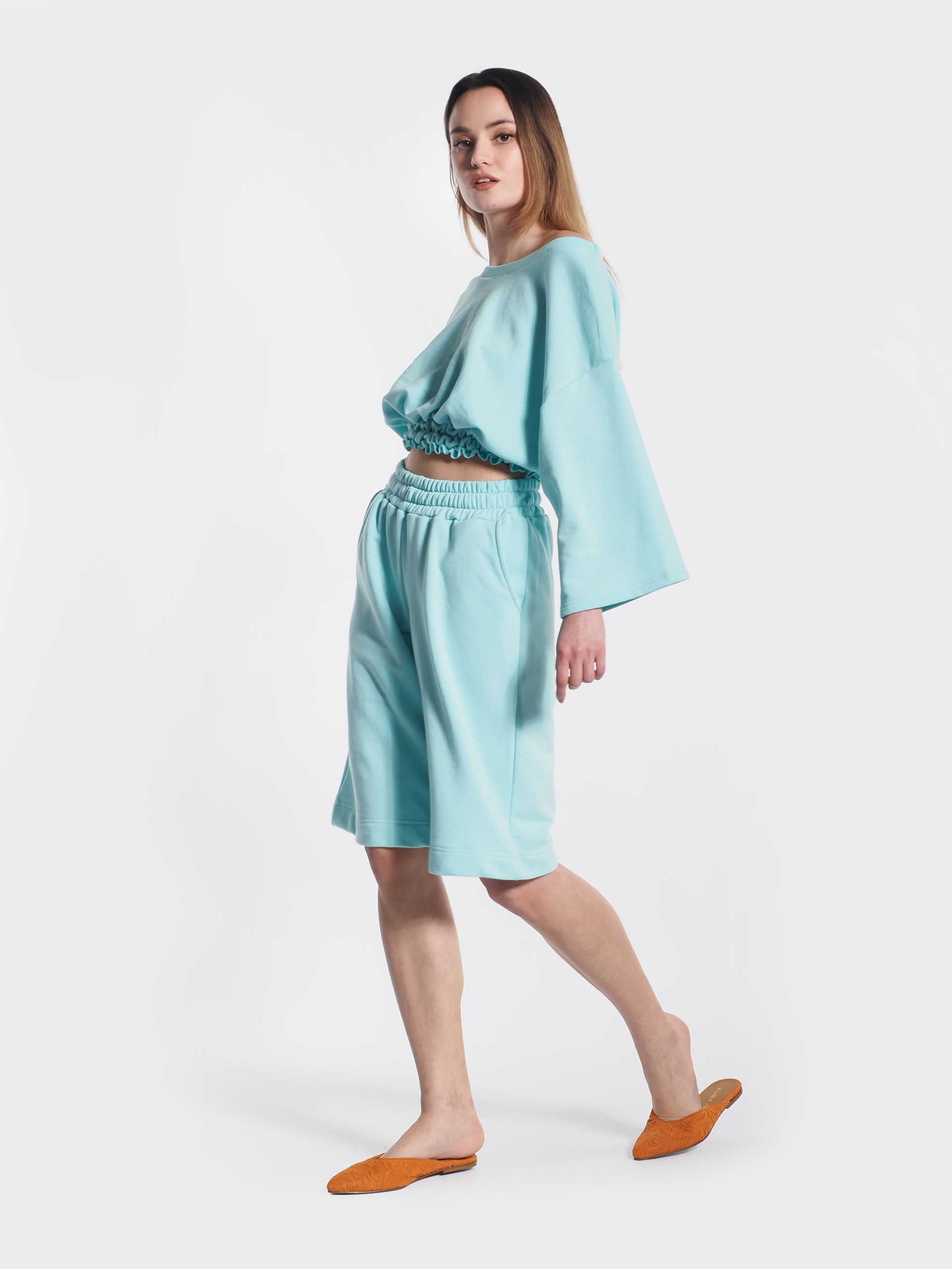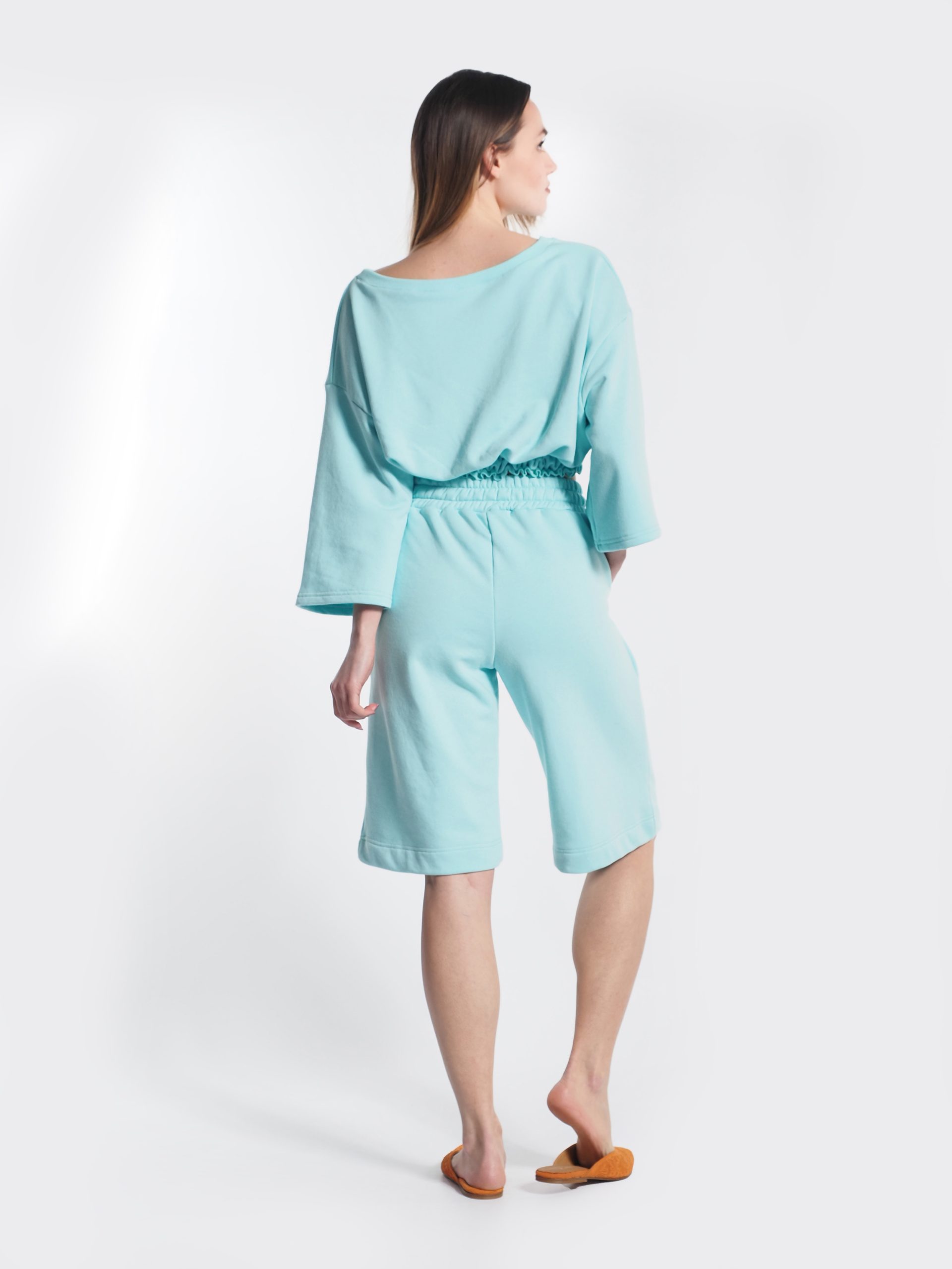 Βερμούδα φούτερ καλοκαιρινή. Χειροποίητη σε aqua χρώμα, με λάστιχο στη μέση. 100% cotton. One size. Χρόνος παράδοσης 3-4 εργάσιμες ημέρες. Σχεδιασμένη και ραμμένη στην Ελλάδα!