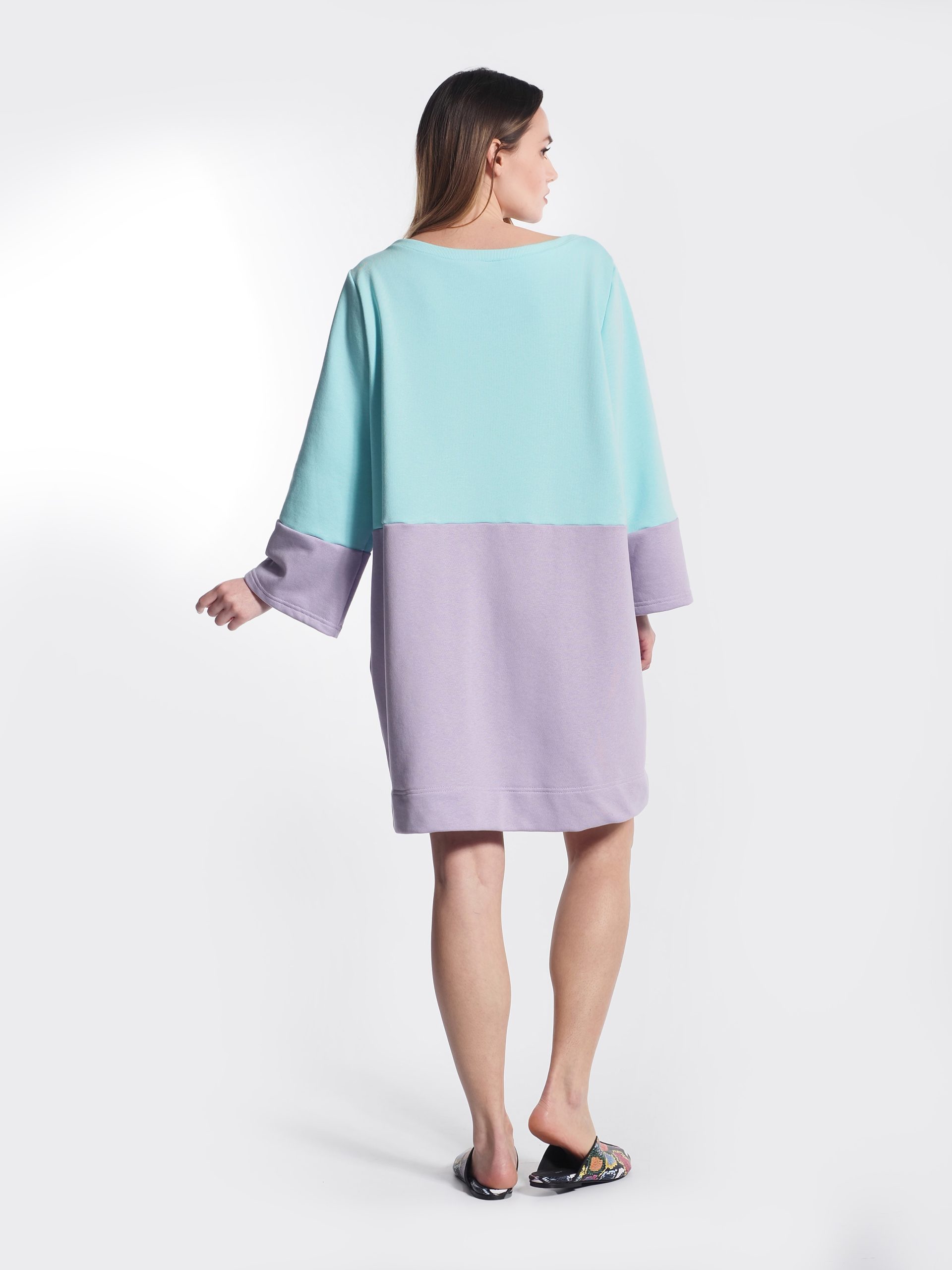 Oversized δίχρωμο φόρεμα (aqua-λιλά). Χειροποίητο! Φούτερ καλοκαιρινό με στρογγυλή ”ξεχειλωμένη” λαιμόκοψη. One Size. 100% cotton. Χρόνος παράδοσης 3-4 εργάσιμες ημέρες. Φτιαγμένο στην Ελλάδα!