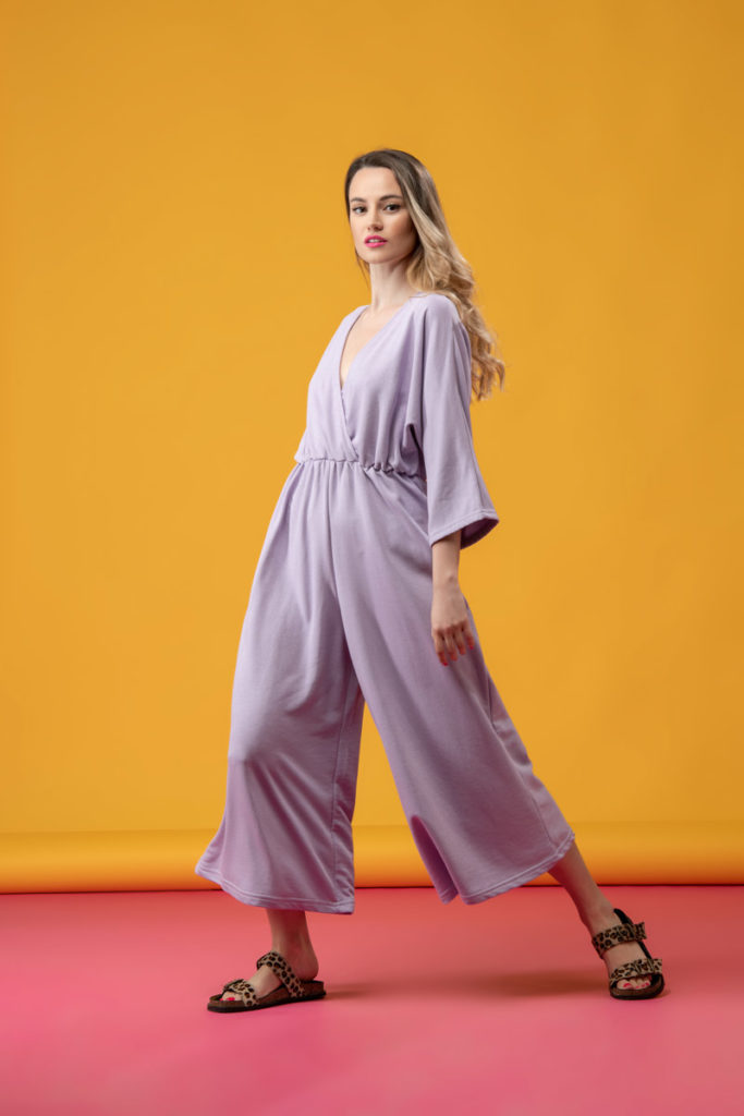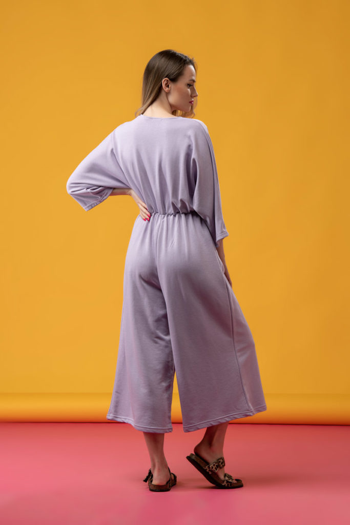 Ολόσωμη φούτερ φόρμα. Κρουαζέ, λιλά, crop με λάστιχο στη μέση. Οne size. Χρόνος παράδοσης 3-4 εργάσιμες ημέρες. Φτιαγμένη στην Ελλάδα!