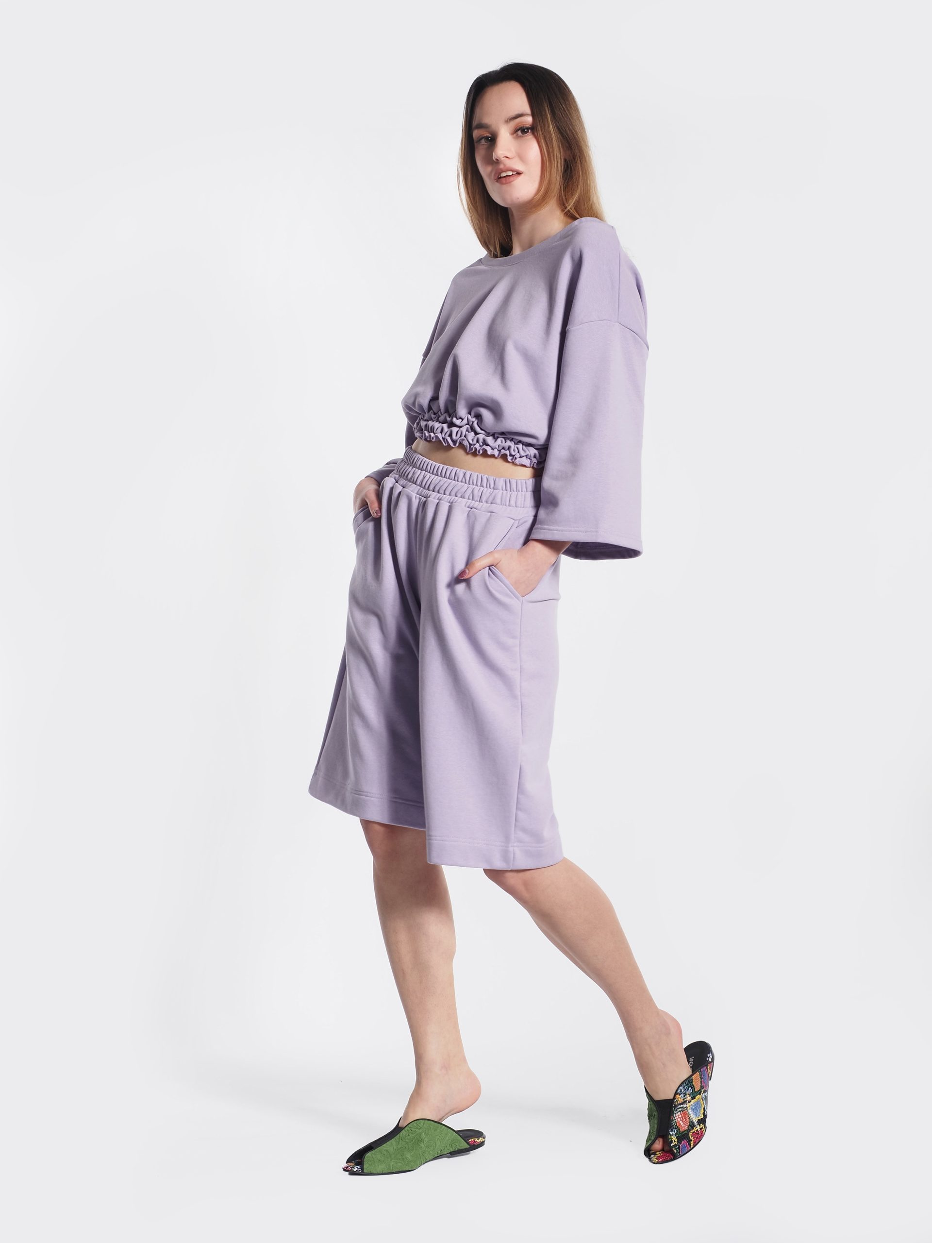 Μπλουζάκι λιλά, χειροποίητο. Oversized τοπ, με σούρα στη μέση. Καλοκαιρινό φούτερ. 100% cotton. One size. Χρόνος παράδοσης 3-4 εργάσιμες ημέρες. Φτιαγμένo στην Ελλάδα!