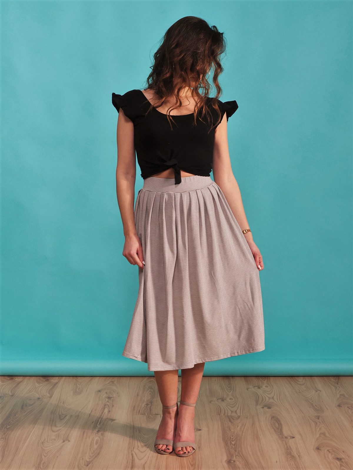 Black top , with falbala sleeves and knot on belly , made of cotton-lycra fabric ! Available in three colours !
