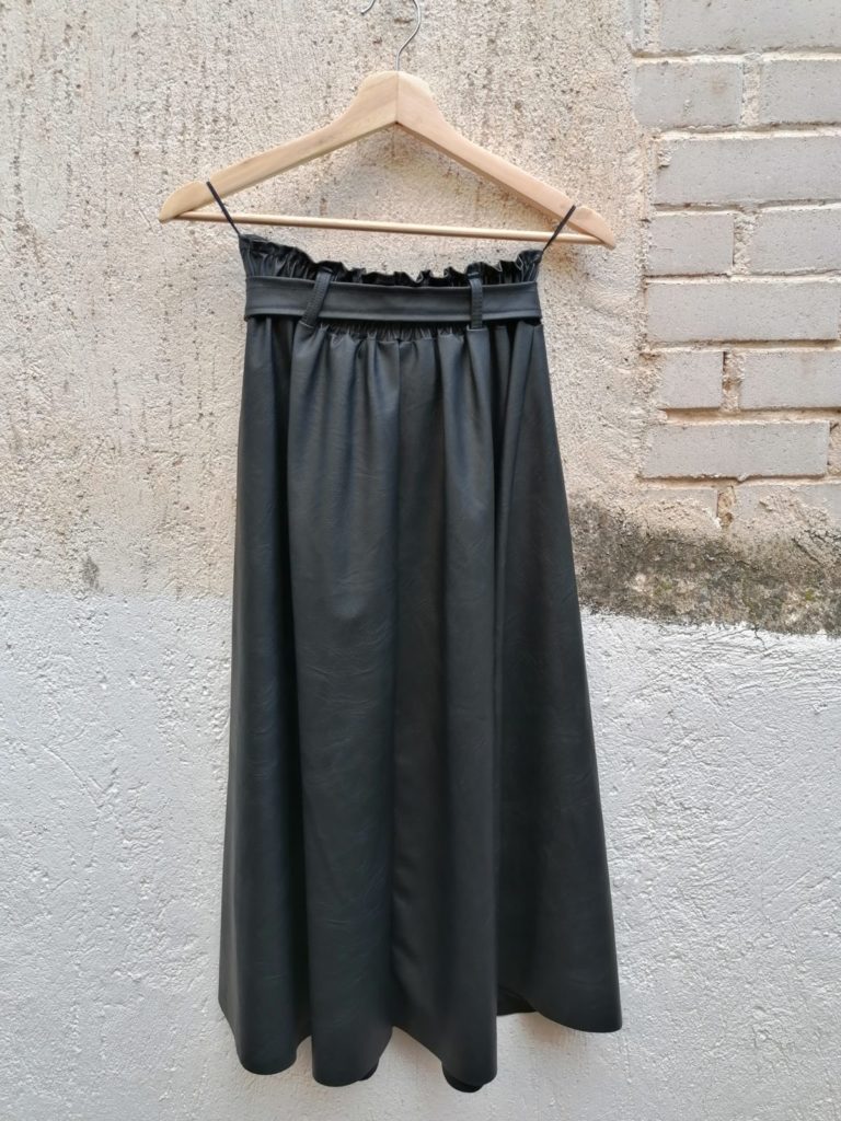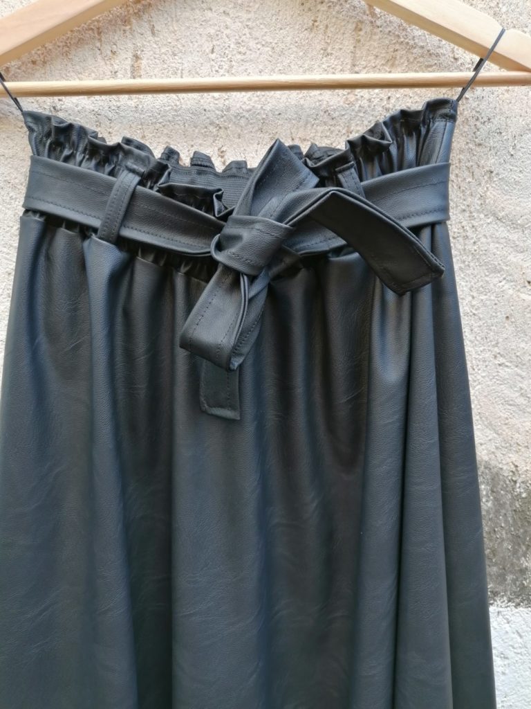 Midi κλος φούστα , κατασκευασμένη από απομίμηση δέρματος ! Με λάστιχο στη μέση για άνετη εφαρμογή , και ζώνη από το ίδιο υλικό !