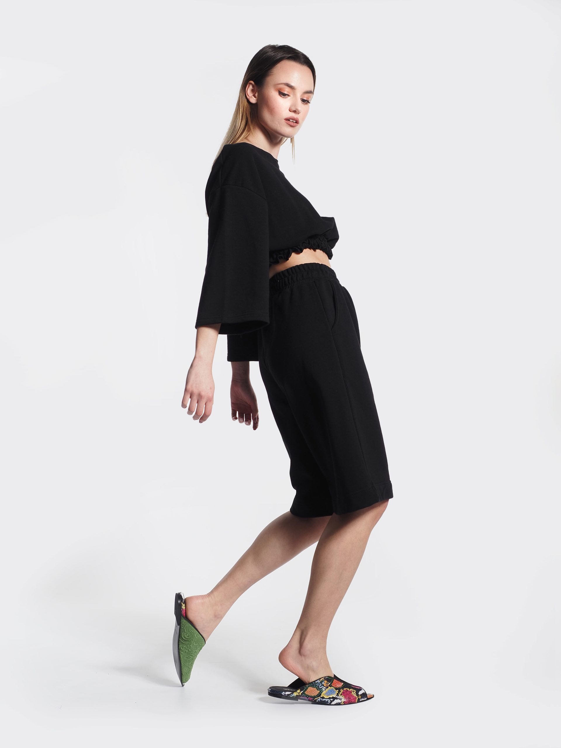 Μαύρη χειροποίητη βερμούδα με λάστιχο.