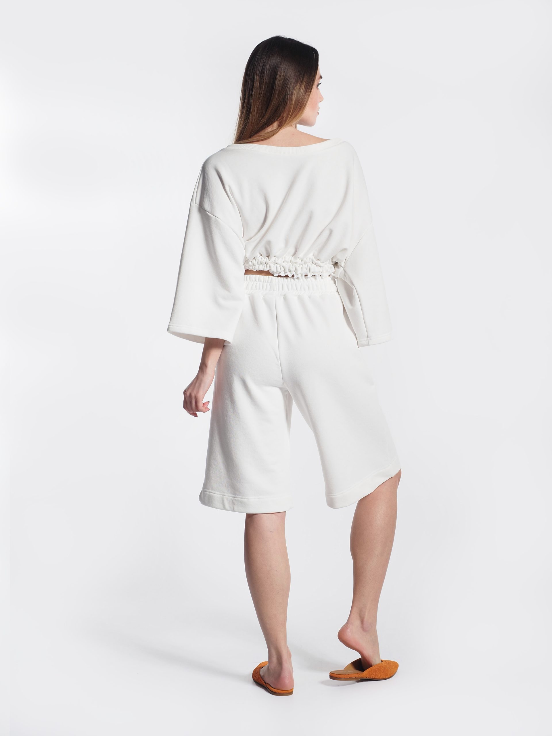 Βερμούδα φούτερ καλοκαιρινή με τσέπες. Χειροποίητη, ζαχαρί(εκρού), με λάστιχο στη μέση, 100% cotton. One size. Χρόνος παράδοσης 3-4 εργάσιμες ημέρες. Σχεδιασμένη και ραμμένη στην Ελλάδα!