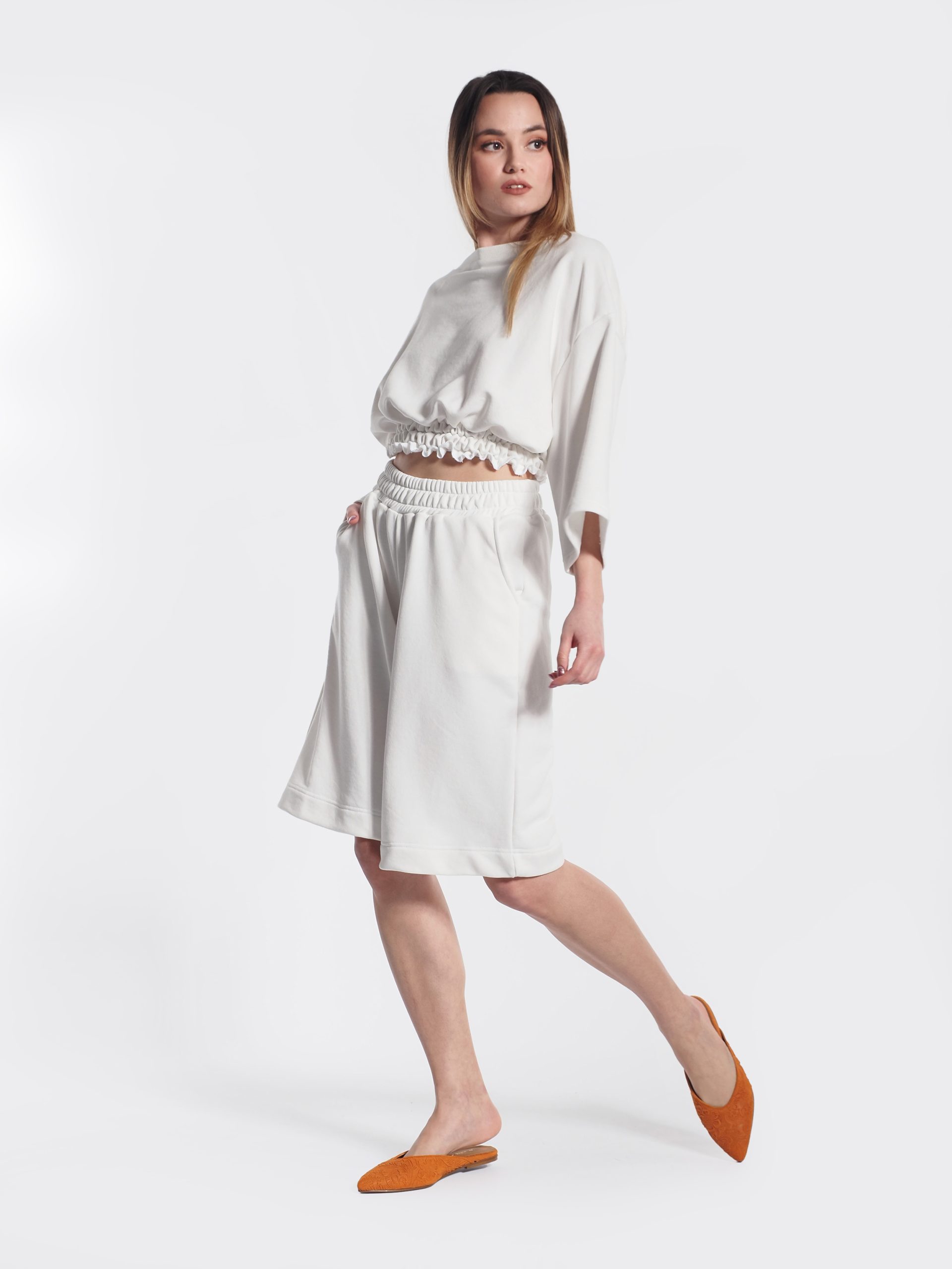 Ζαχαρί(εκρού) χειροποίητη βερμούδα με λάστιχο.