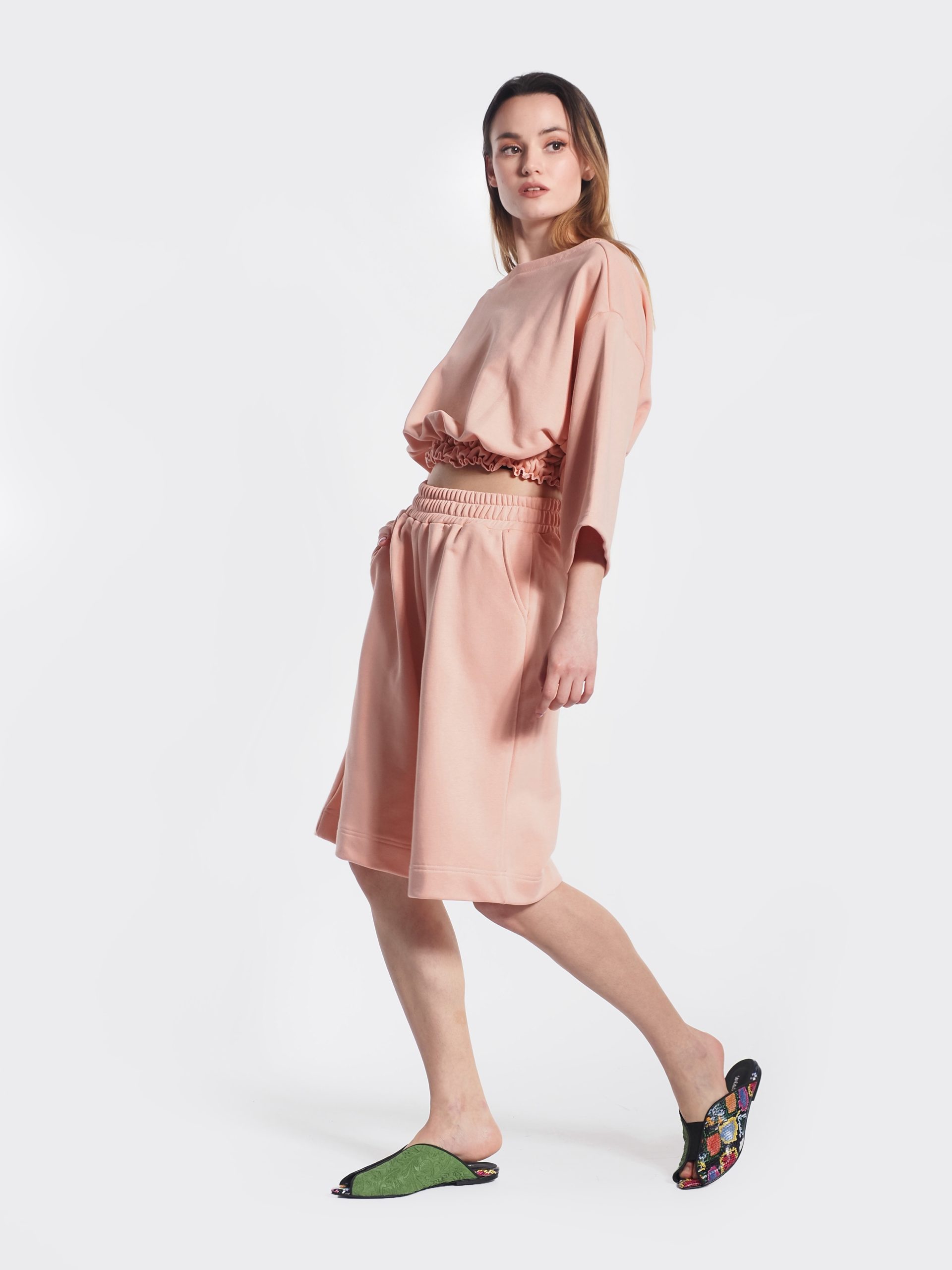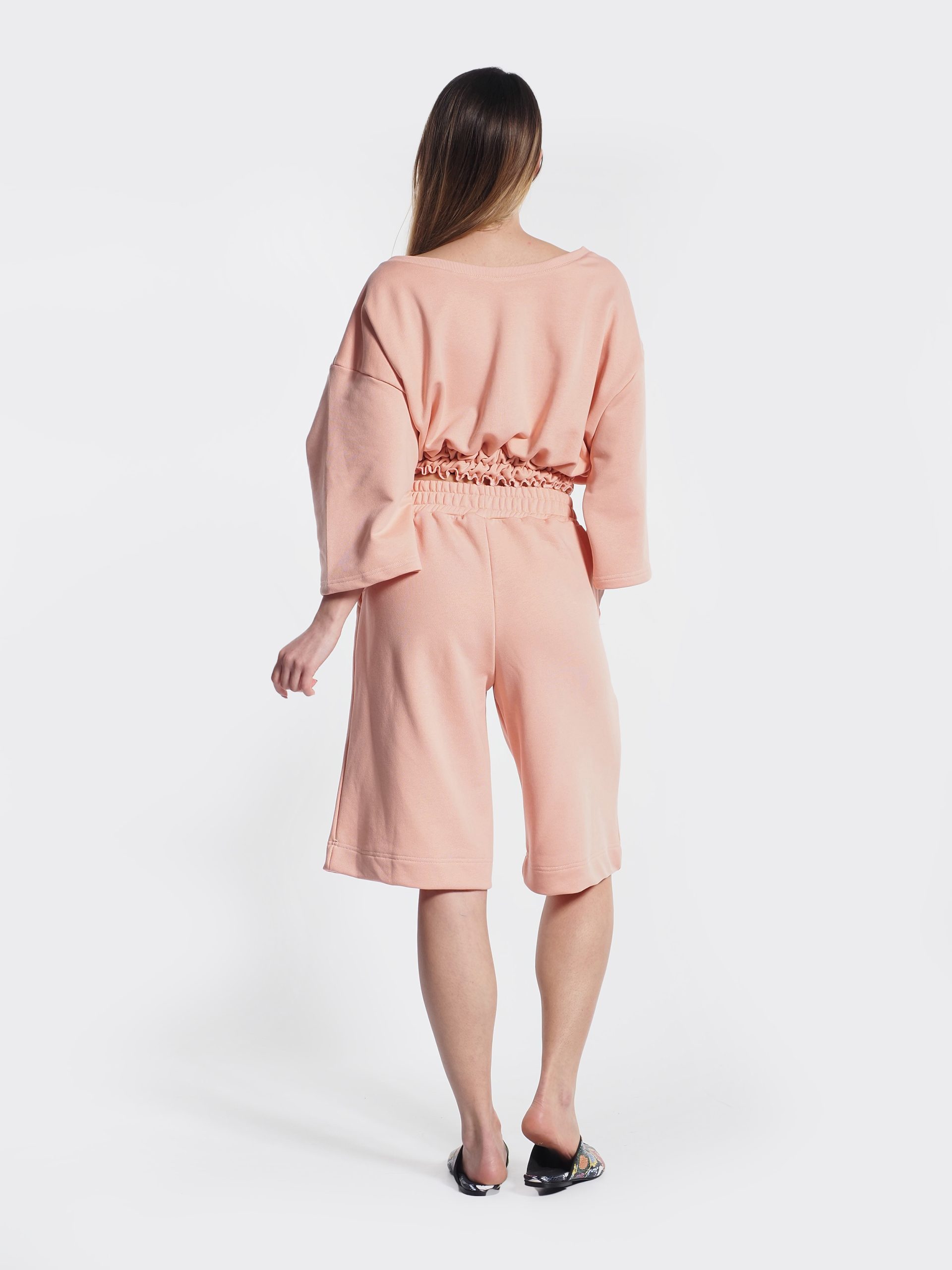Oversized ροδακινί, τοπ μπλουζάκι με σούρα στη μέση.