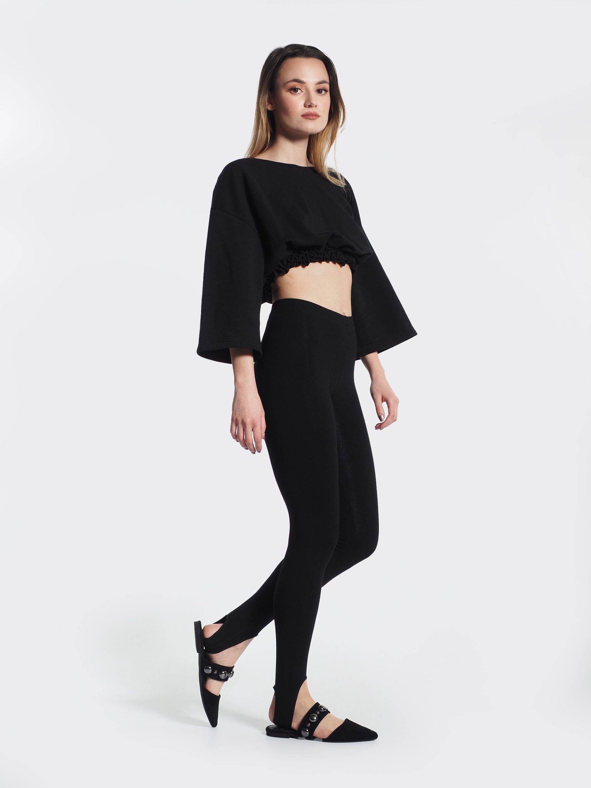 Oversized μαύρο τοπ μπλουζάκι με σούρα στη μέση.